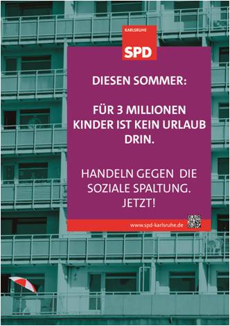 "Wir gönnen allen Menschen eine schöne Ferien- und Urlaubszeit. Leider geht das CDU-Wahlplakat aber an der Lebensrealität vieler Menschen vorbei, die sich keinen Strandurlaub leisten können", so SPD-Bundestagskandidat Parsa Marvi. Laut einer aktuellen Erhebung des Kinderschutzbundes könnten etwa 3 Millionen Kinder in Deutschland wegen materieller Not ihrer Eltern und Erziehungsberechtigten nicht in den Urlaub fahren. In den vergangenen Jahren sei demnach die Zahl der Kinder, die wegen der Armut ihrer Familien in den Ferien zu Hause bleiben müssten, um 50 Prozent gewachsen. Dabei befördere gerade der Familienurlaub den Zusammenhalt.