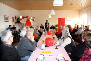 Gleich zwei Parteijubiläen beging die Karlsruher SPD mit ihrem Neujahrsempfang am vergangenen Freitag in Grötzingen: 150 Jahre SPD bundesweit und 120 Jahre SPD Grötzingen. Im festlich dekorierten Saal der Begegnungsstätte Grötzingen gratulierten mit einem Streifzug durch die Parteigeschichte der SPD-Kreisvorsitzende Parsa Marvi, der Ortsvereinsvorsitzende Kurt Fischer, Staatssekretär Frank Mentrup, Ortsvorsteher Thomas Tritsch und der Vorsitzende der SPD-Landtagsfraktion Claus Schmiedel.