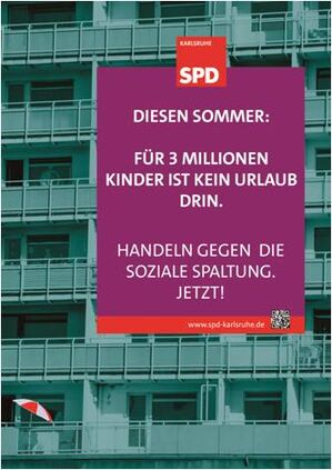 "Wir gönnen allen Menschen eine schöne Ferien- und Urlaubszeit. Leider geht das CDU-Wahlplakat aber an der Lebensrealität vieler Menschen vorbei, die sich keinen Strandurlaub leisten können", so SPD-Bundestagskandidat Parsa Marvi. Laut einer aktuellen Erhebung des Kinderschutzbundes könnten etwa 3 Millionen Kinder in Deutschland wegen materieller Not ihrer Eltern und Erziehungsberechtigten nicht in den Urlaub fahren. In den vergangenen Jahren sei demnach die Zahl der Kinder, die wegen der Armut ihrer Familien in den Ferien zu Hause bleiben müssten, um 50 Prozent gewachsen. Dabei befördere gerade der Familienurlaub den Zusammenhalt.